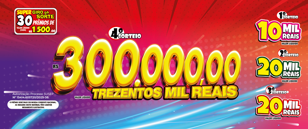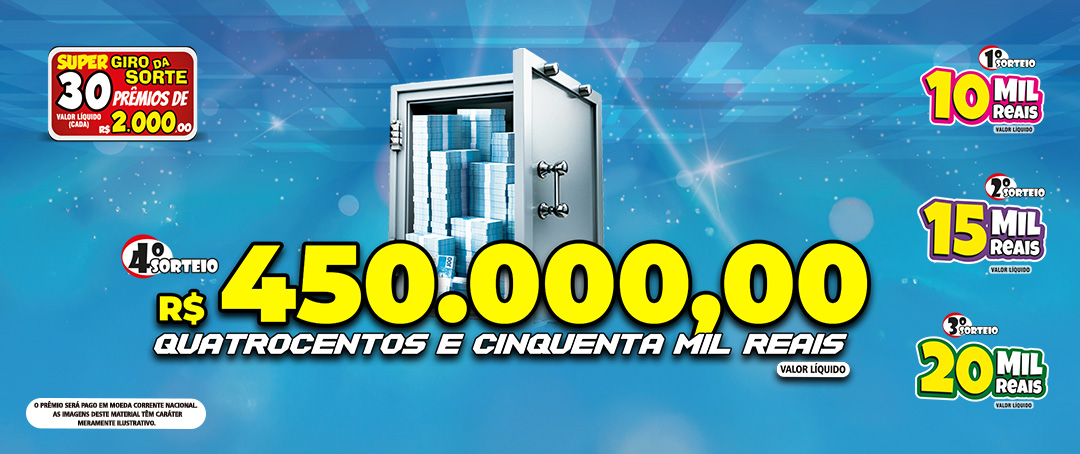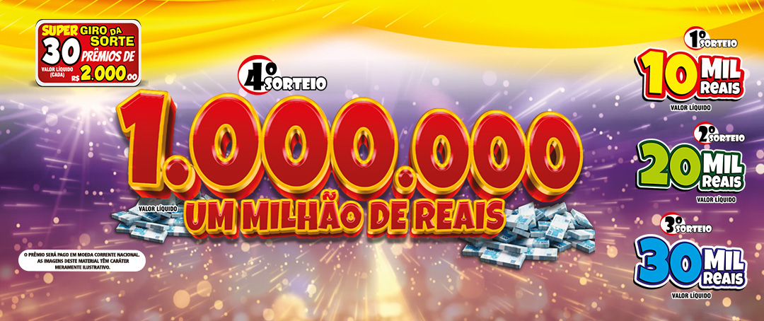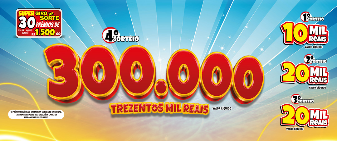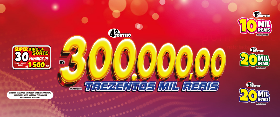 30 PRÊMIOS DE R$ 2.000,00 (cada) - Valor líquido