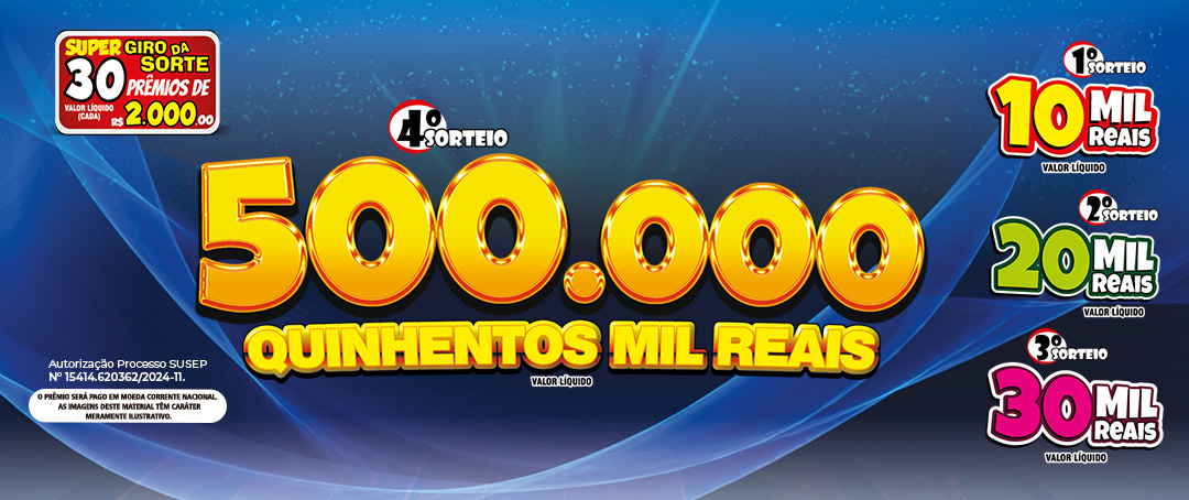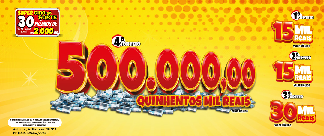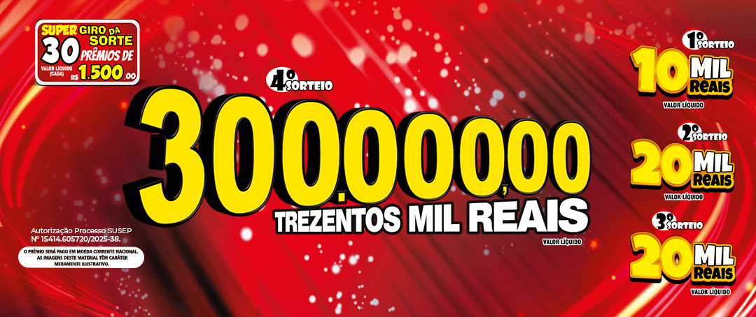 30 PRÊMIOS DE R$ 1.500,00 (cada) - Valor líquido