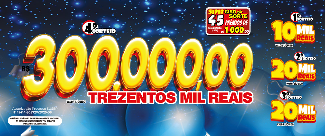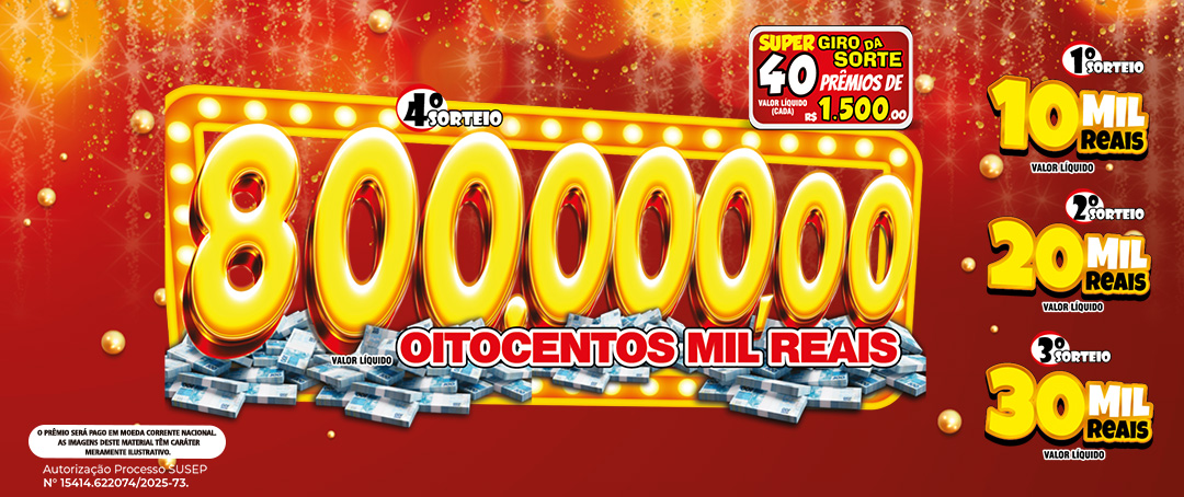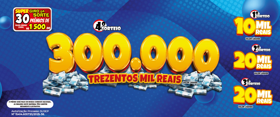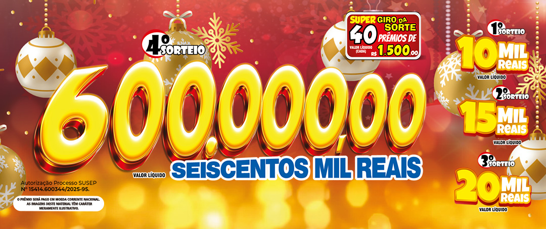 40 PRÊMIOS DE R$ 1.500,00 (cada) - Valor líquido